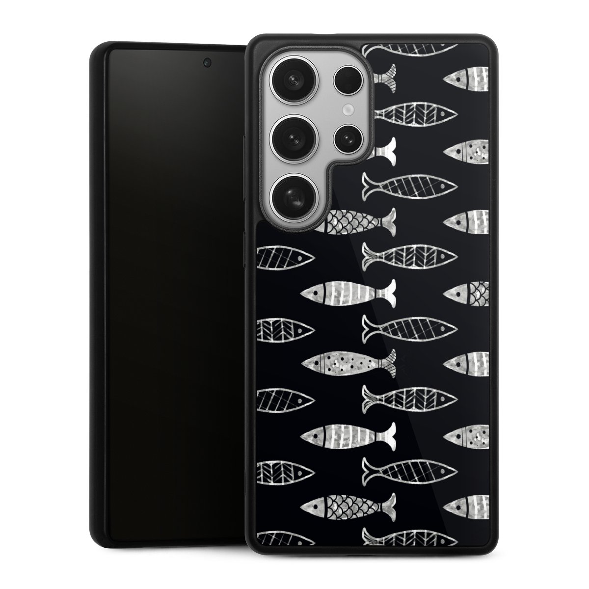 We print your design on the back of the glass inlay and then connect it firmly to the silicone case ,so that nothing sticks out and everything looks like it was cast from one piece. In addition, the sturdy glass element is protected from scratches by an additional coating and ensures a slight reflection on the shiny print image.