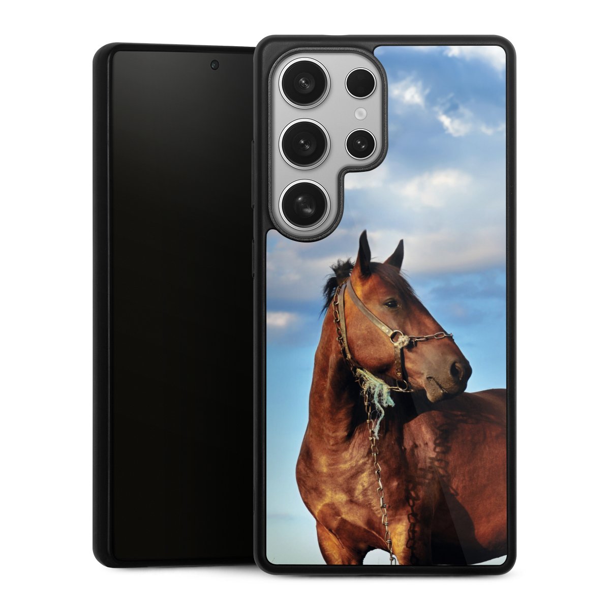 We print your design on the back of the glass inlay and then connect it firmly to the silicone case ,so that nothing sticks out and everything looks like it was cast from one piece. In addition, the sturdy glass element is protected from scratches by an additional coating and ensures a slight reflection on the shiny print image.