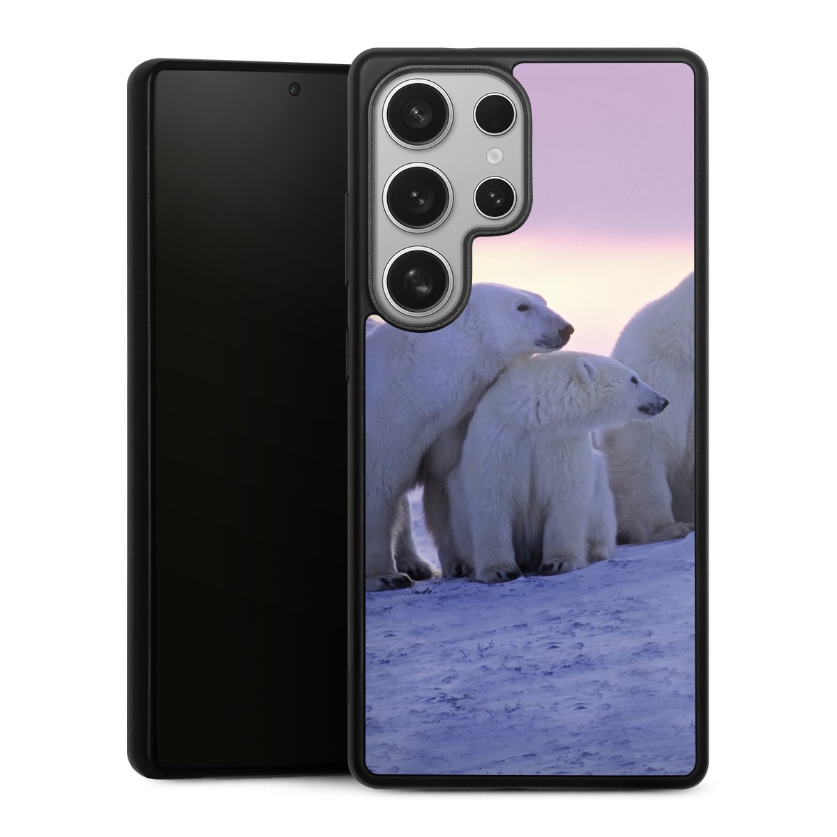 We print your design on the back of the glass inlay and then connect it firmly to the silicone case ,so that nothing sticks out and everything looks like it was cast from one piece. In addition, the sturdy glass element is protected from scratches by an additional coating and ensures a slight reflection on the shiny print image.