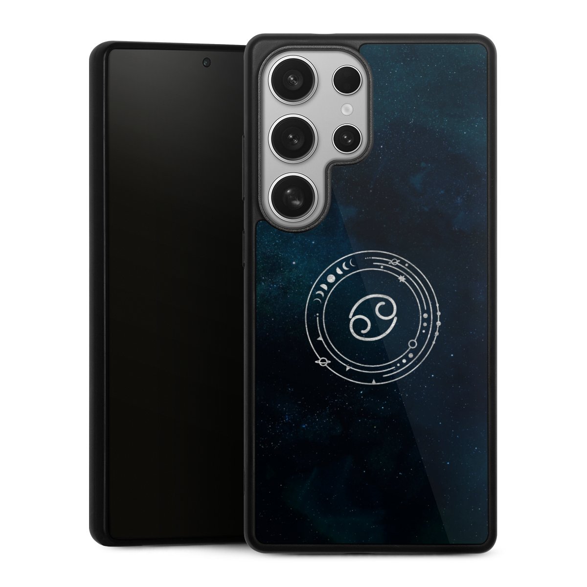 We print your design on the back of the glass inlay and then connect it firmly to the silicone case ,so that nothing sticks out and everything looks like it was cast from one piece. In addition, the sturdy glass element is protected from scratches by an additional coating and ensures a slight reflection on the shiny print image.