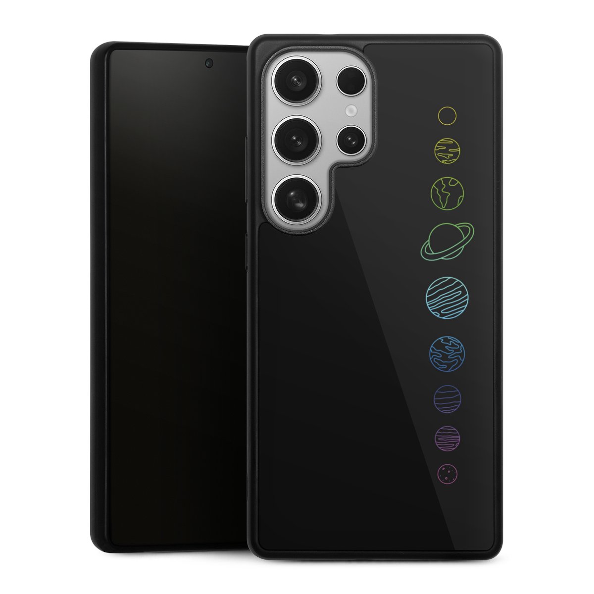 We print your design on the back of the glass inlay and then connect it firmly to the silicone case ,so that nothing sticks out and everything looks like it was cast from one piece. In addition, the sturdy glass element is protected from scratches by an additional coating and ensures a slight reflection on the shiny print image.