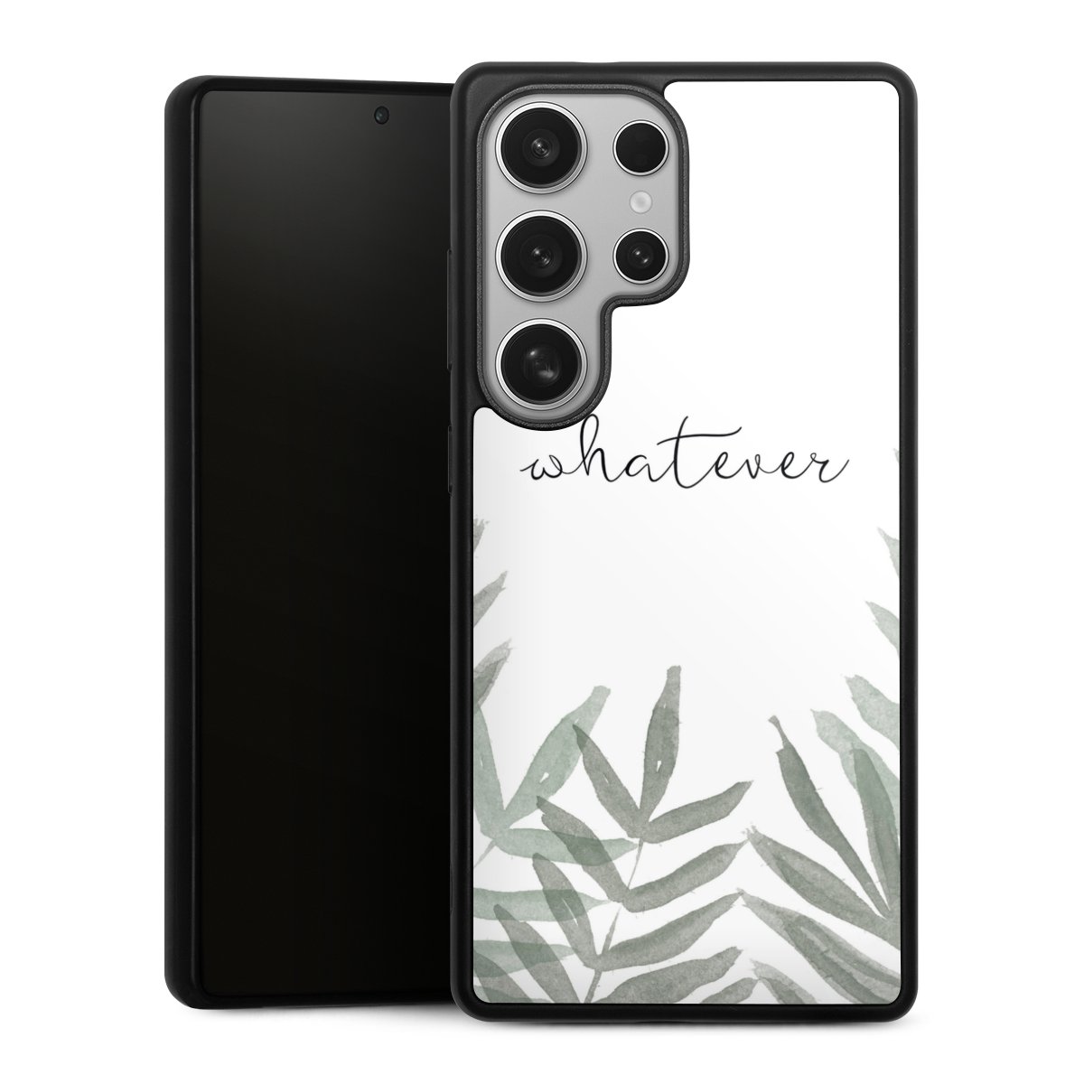 We print your design on the back of the glass inlay and then connect it firmly to the silicone case ,so that nothing sticks out and everything looks like it was cast from one piece. In addition, the sturdy glass element is protected from scratches by an additional coating and ensures a slight reflection on the shiny print image.