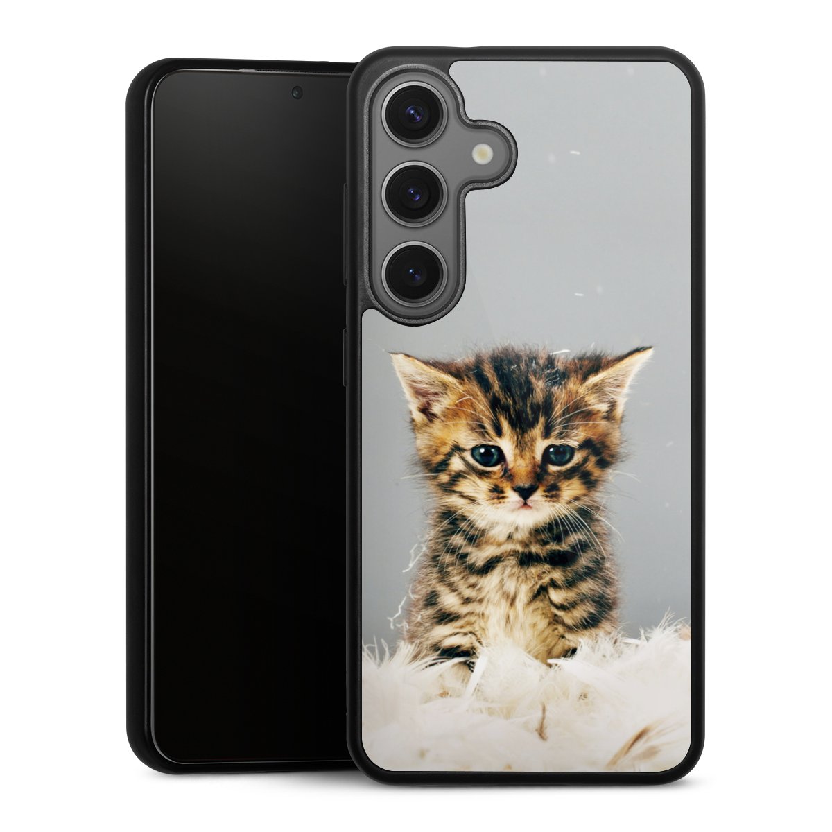 We print your design on the back of the glass inlay and then connect it firmly to the silicone case ,so that nothing sticks out and everything looks like it was cast from one piece. In addition, the sturdy glass element is protected from scratches by an additional coating and ensures a slight reflection on the shiny print image.