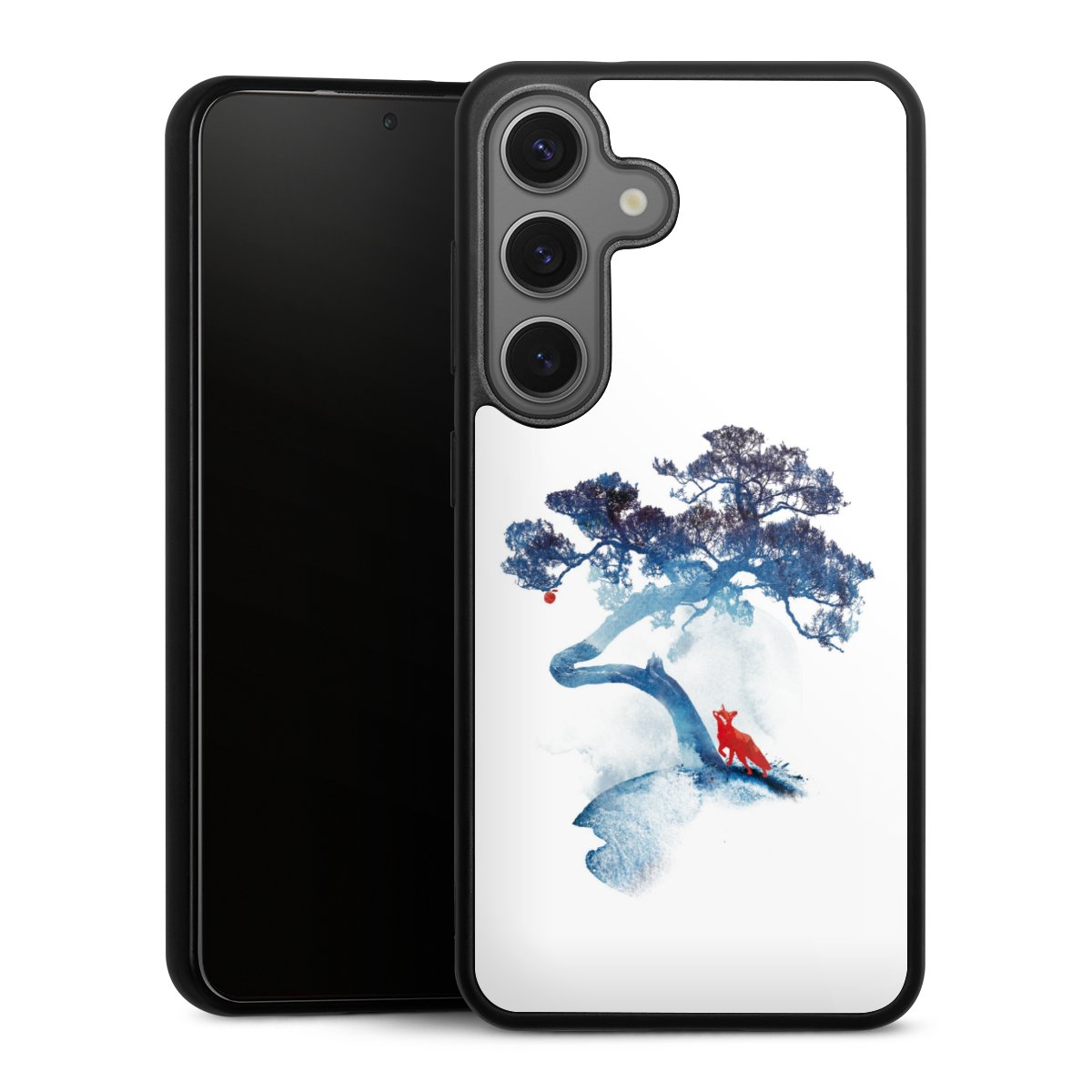 We print your design on the back of the glass inlay and then connect it firmly to the silicone case ,so that nothing sticks out and everything looks like it was cast from one piece. In addition, the sturdy glass element is protected from scratches by an additional coating and ensures a slight reflection on the shiny print image.