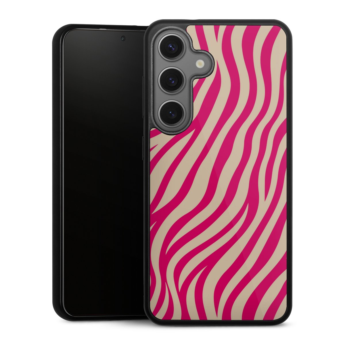 We print your design on the back of the glass inlay and then connect it firmly to the silicone case ,so that nothing sticks out and everything looks like it was cast from one piece. In addition, the sturdy glass element is protected from scratches by an additional coating and ensures a slight reflection on the shiny print image.