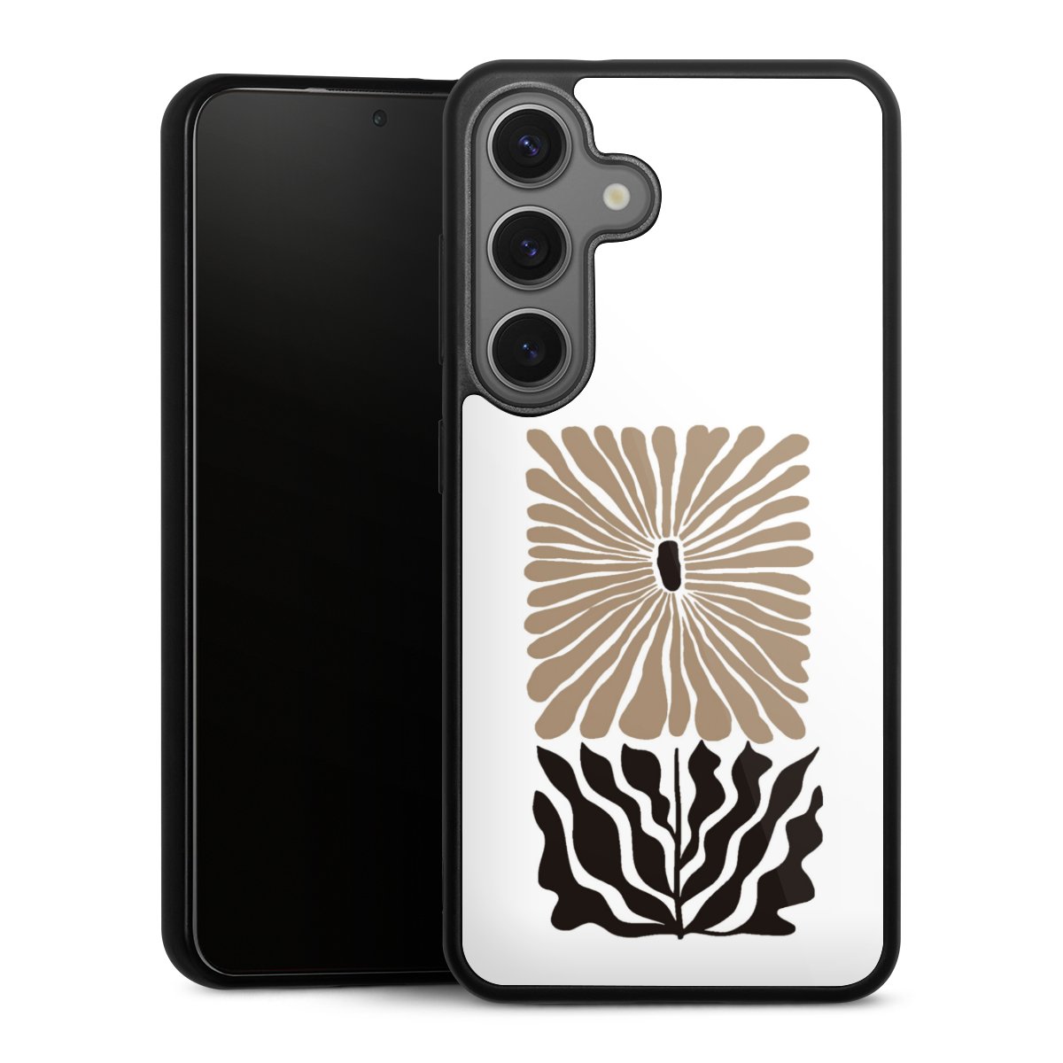 We print your design on the back of the glass inlay and then connect it firmly to the silicone case ,so that nothing sticks out and everything looks like it was cast from one piece. In addition, the sturdy glass element is protected from scratches by an additional coating and ensures a slight reflection on the shiny print image.