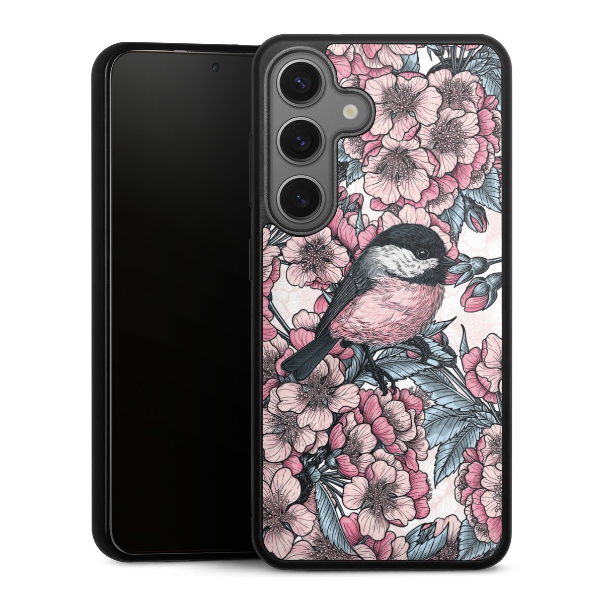 We print your design on the back of the glass inlay and then connect it firmly to the silicone case ,so that nothing sticks out and everything looks like it was cast from one piece. In addition, the sturdy glass element is protected from scratches by an additional coating and ensures a slight reflection on the shiny print image.
