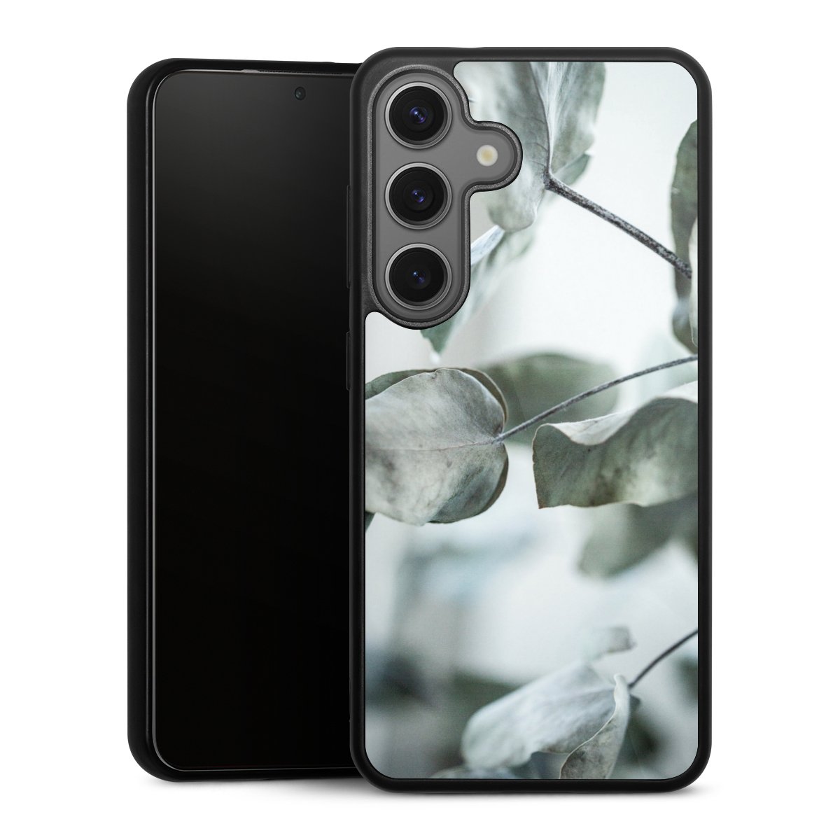 We print your design on the back of the glass inlay and then connect it firmly to the silicone case ,so that nothing sticks out and everything looks like it was cast from one piece. In addition, the sturdy glass element is protected from scratches by an additional coating and ensures a slight reflection on the shiny print image.
