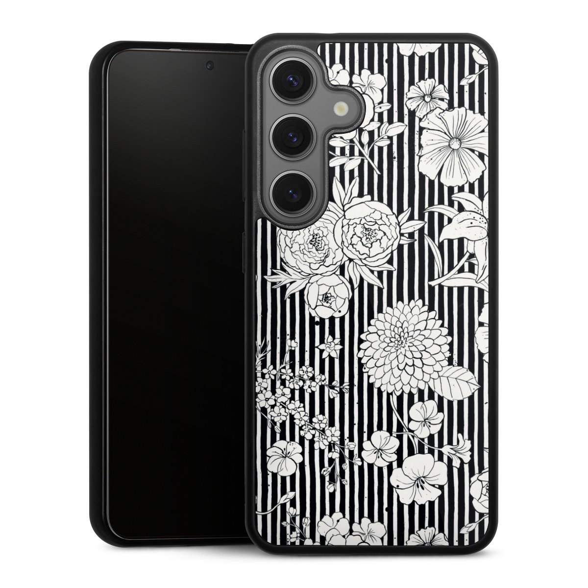 Flowers and Stripes Black and White