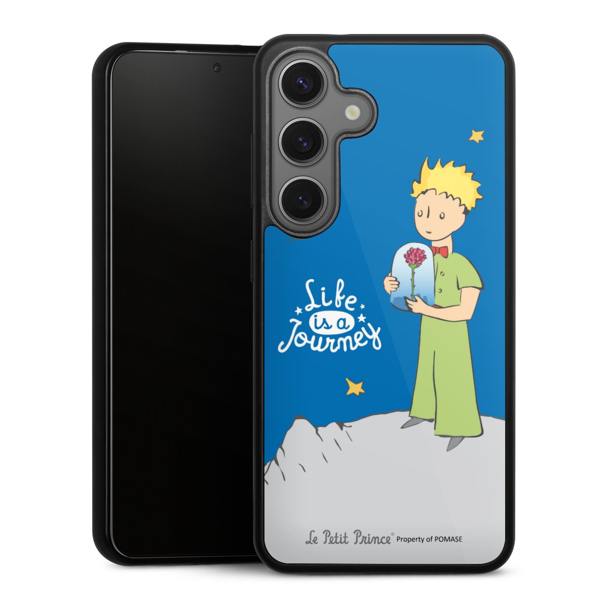We print your design on the back of the glass inlay and then connect it firmly to the silicone case ,so that nothing sticks out and everything looks like it was cast from one piece. In addition, the sturdy glass element is protected from scratches by an additional coating and ensures a slight reflection on the shiny print image.