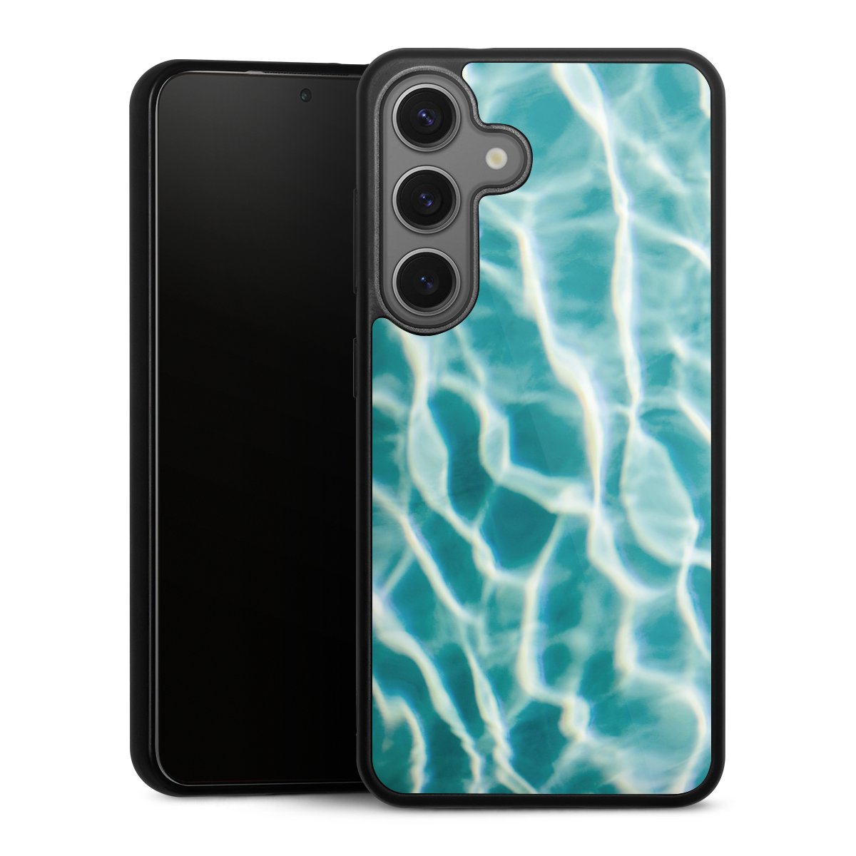 We print your design on the back of the glass inlay and then connect it firmly to the silicone case ,so that nothing sticks out and everything looks like it was cast from one piece. In addition, the sturdy glass element is protected from scratches by an additional coating and ensures a slight reflection on the shiny print image.