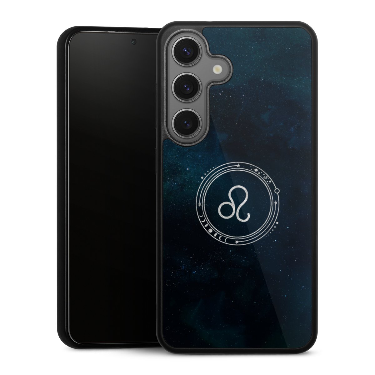 We print your design on the back of the glass inlay and then connect it firmly to the silicone case ,so that nothing sticks out and everything looks like it was cast from one piece. In addition, the sturdy glass element is protected from scratches by an additional coating and ensures a slight reflection on the shiny print image.