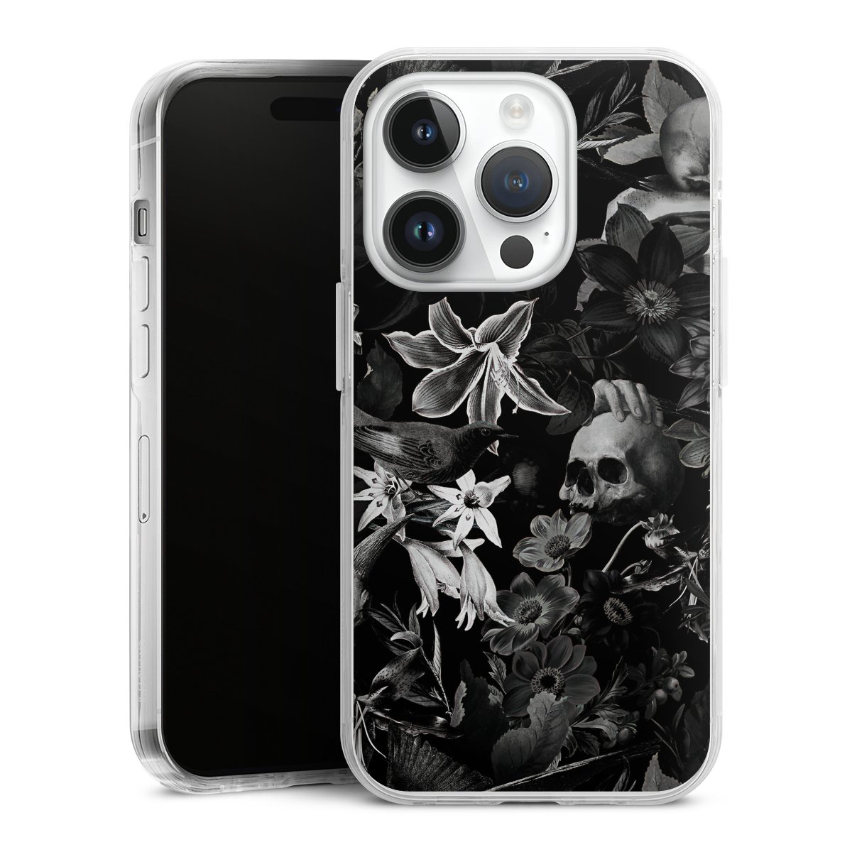 Skulls and Flowers on Black Background