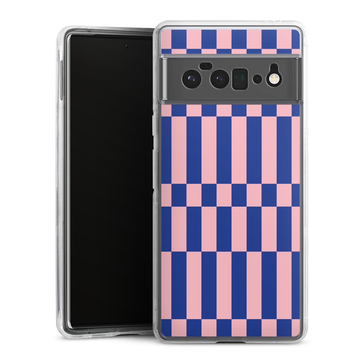 Checked Abstract Bold Electric Blue and Pink Color Block