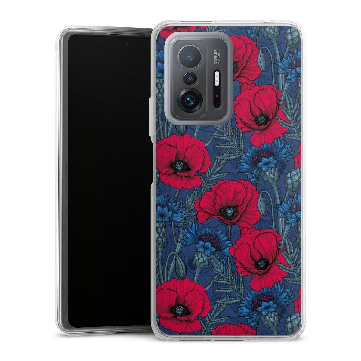 Poppies and Cornflowers on Blue