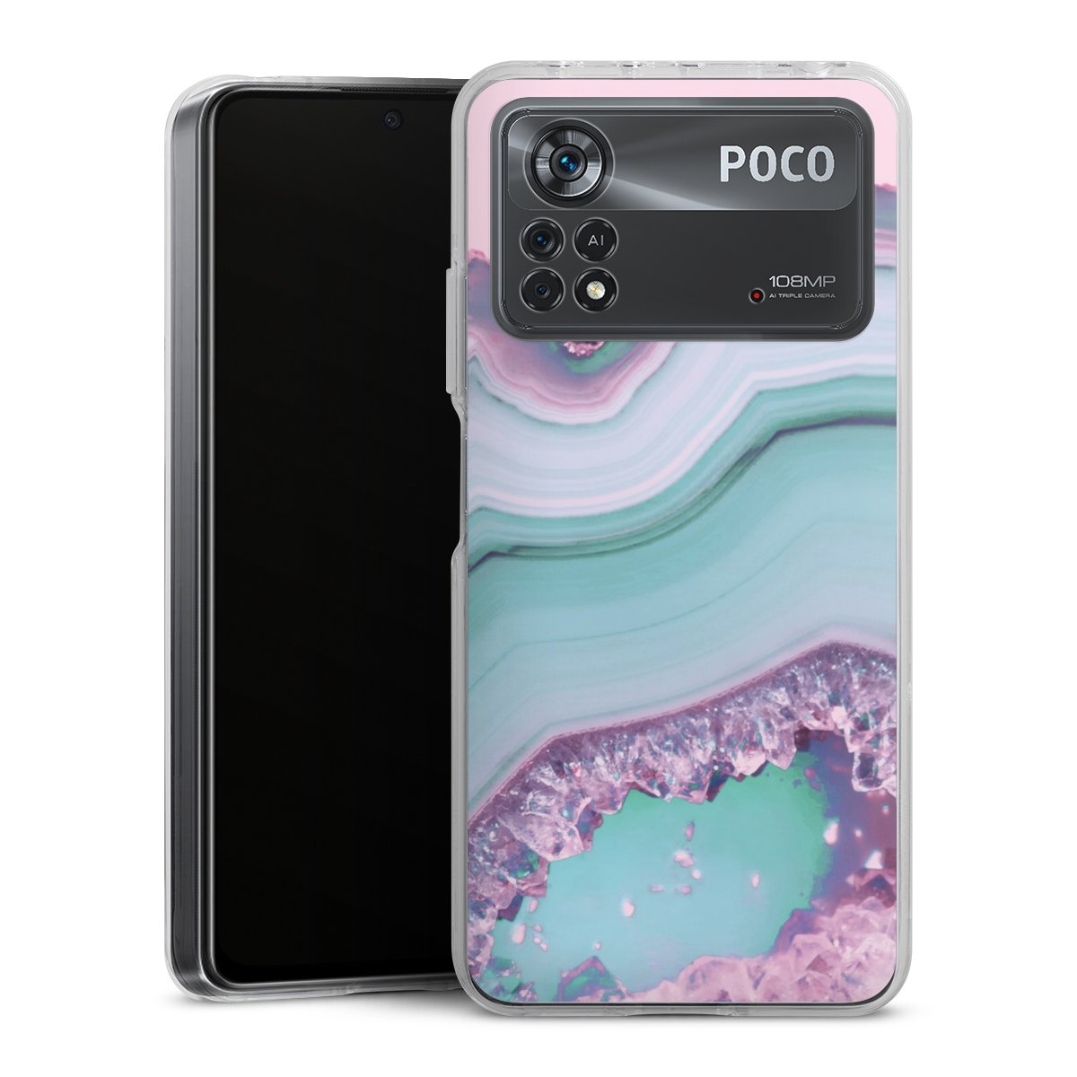 For this phone case we use the solid direct print process. The print area covers the back, the edge remains unprinted. The phone case can be ordered unprinted, fully printed or partially printed.