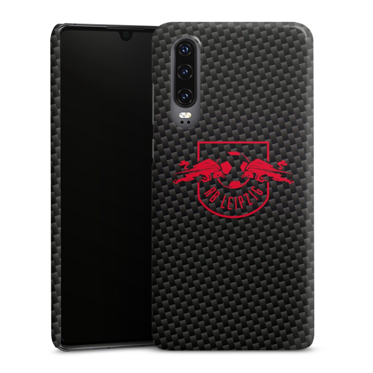 Red RB Leipzig logo on carbon look