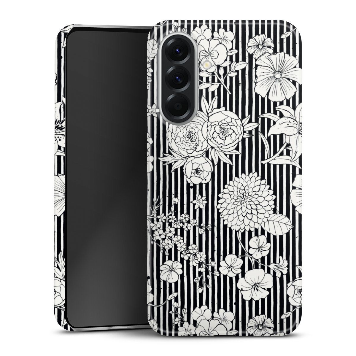 Flowers and Stripes Black and White