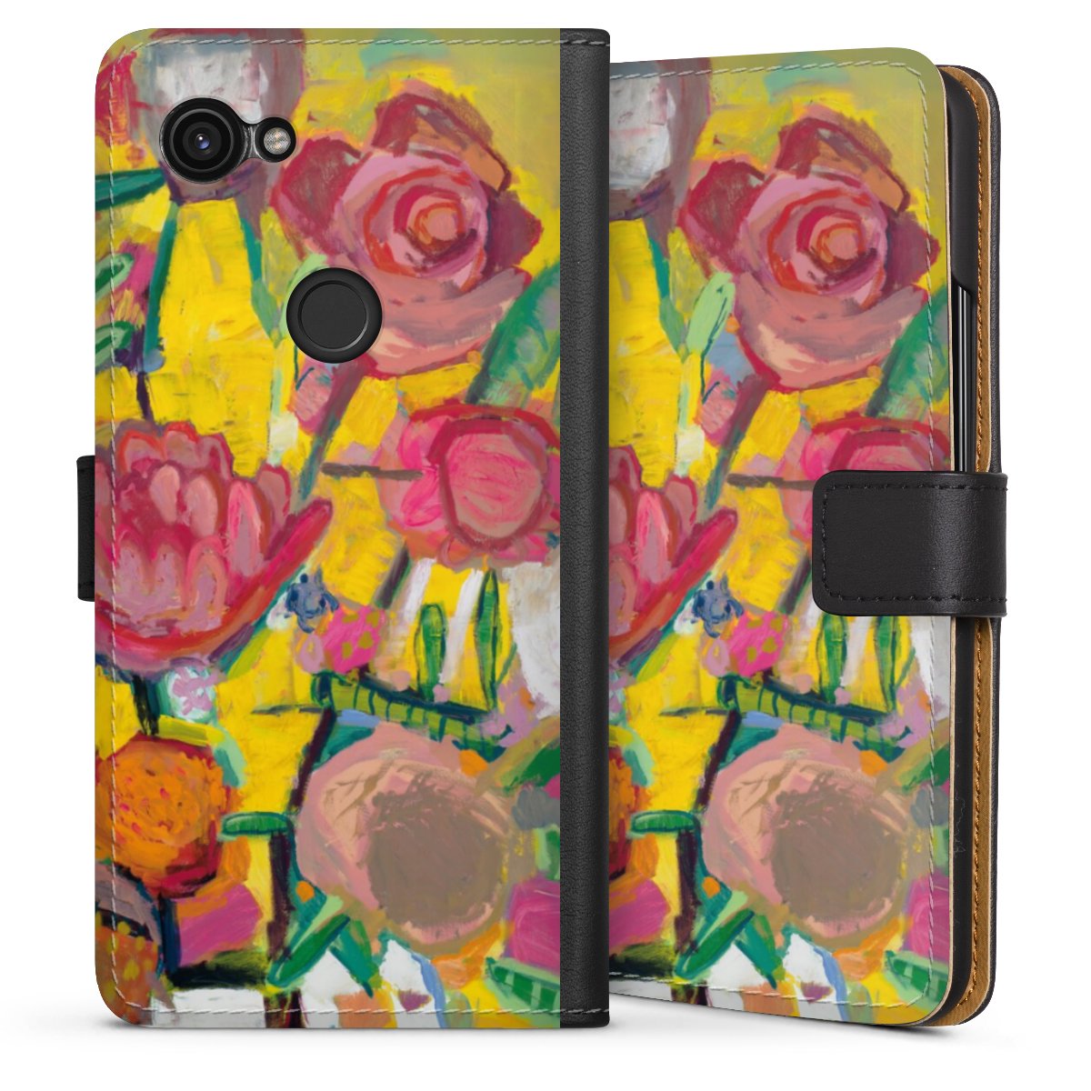 Product details The handy phone bag comes with a polycarbonate hard case on the inside, offering your smartphone secure protection while we are using a highquality, vegan Skai® leather imitate to form the flap and the outside of the case. You can open the flap sidewards and slots for money bills and business cars are included. The case closes with an magnetic flap.