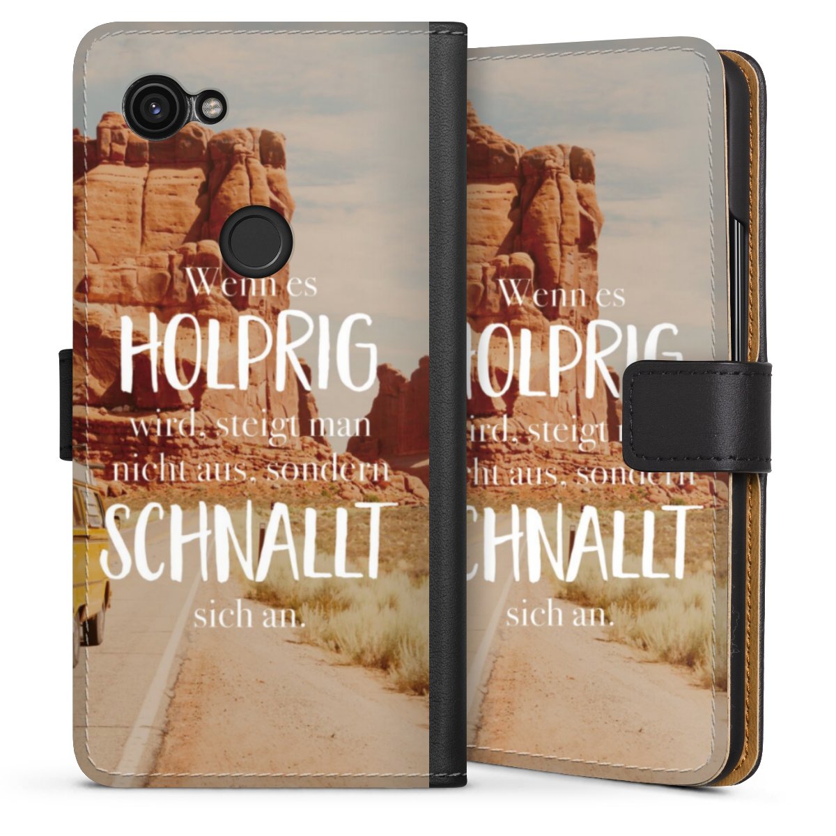 Product details The handy phone bag comes with a polycarbonate hard case on the inside, offering your smartphone secure protection while we are using a highquality, vegan Skai® leather imitate to form the flap and the outside of the case. You can open the flap sidewards and slots for money bills and business cars are included. The case closes with an magnetic flap.