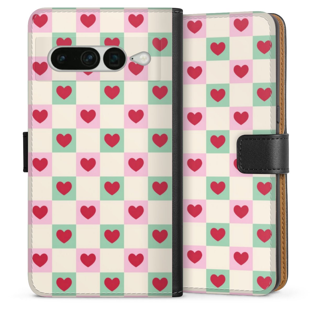 Valentine Checked Hearts Pattern Pink Green