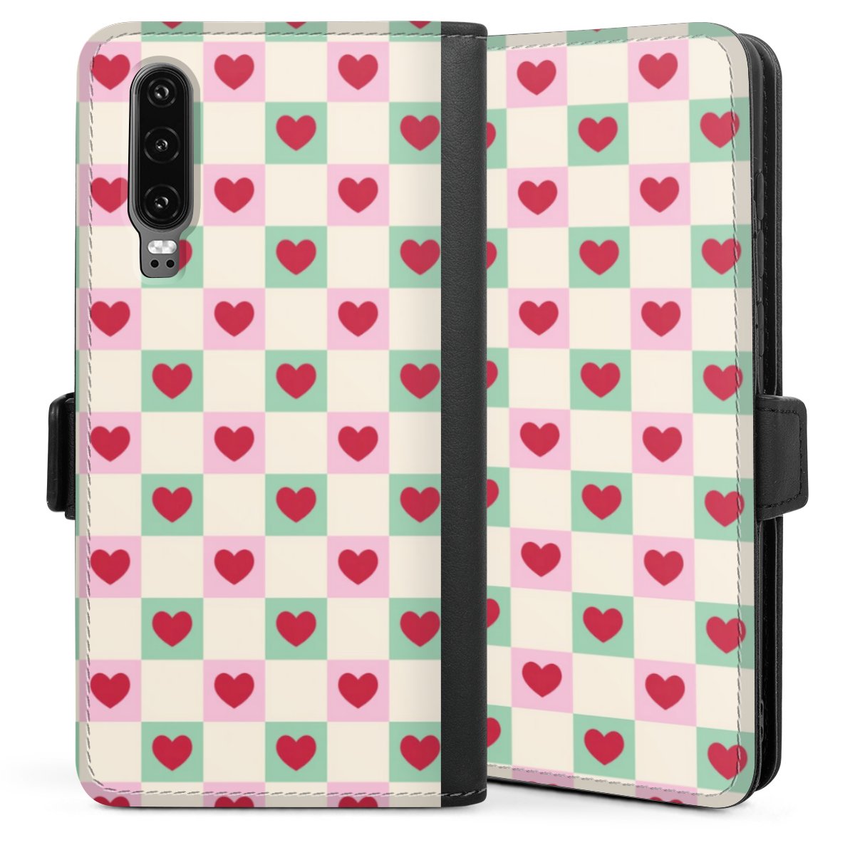 Valentine Checked Hearts Pattern Pink Green
