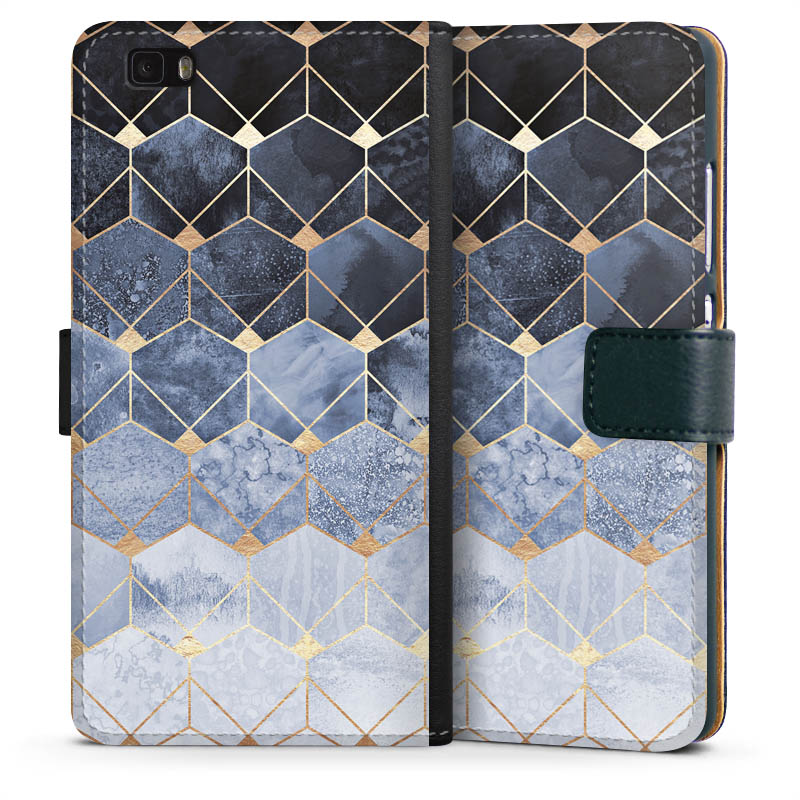 Blue Hexagons And Diamonds Gold Print