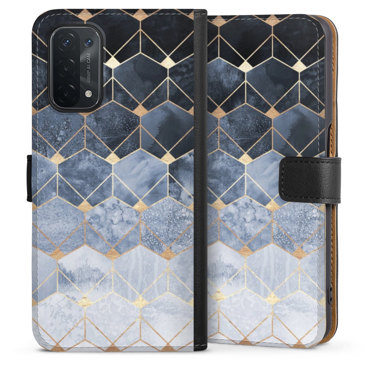Blue Hexagons And Diamonds Gold Print
