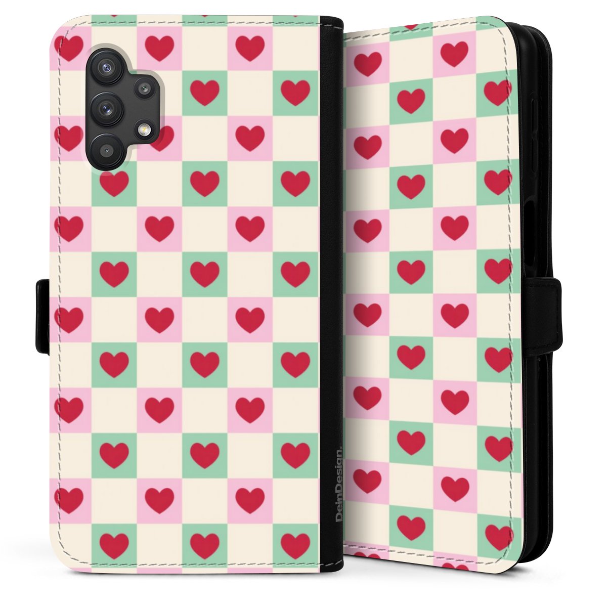 Valentine Checked Hearts Pattern Pink Green