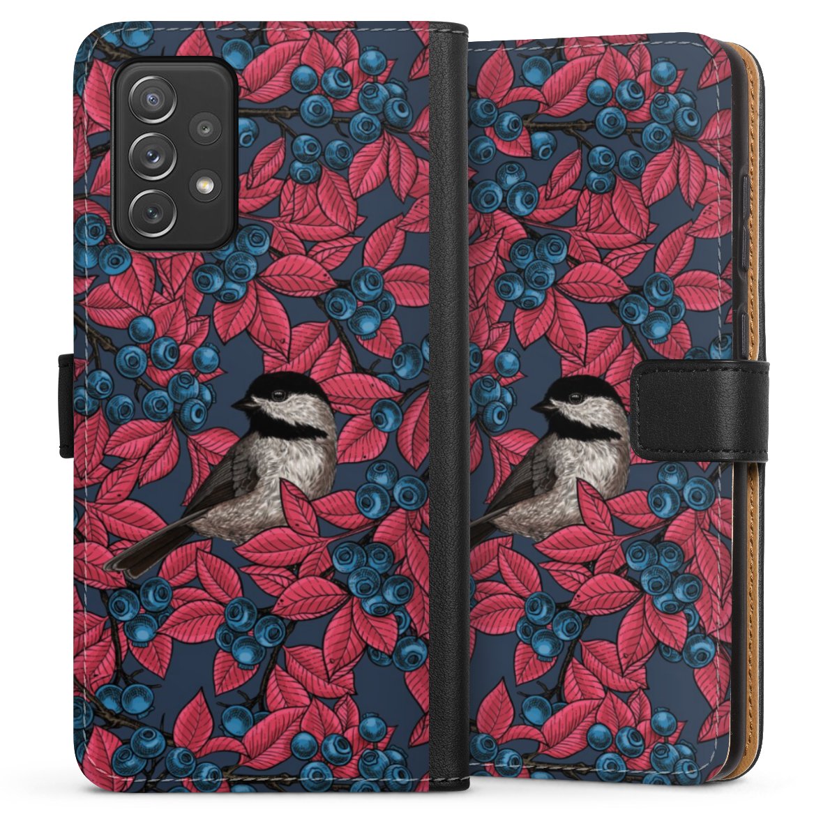 Blueberries And Birds On Navy