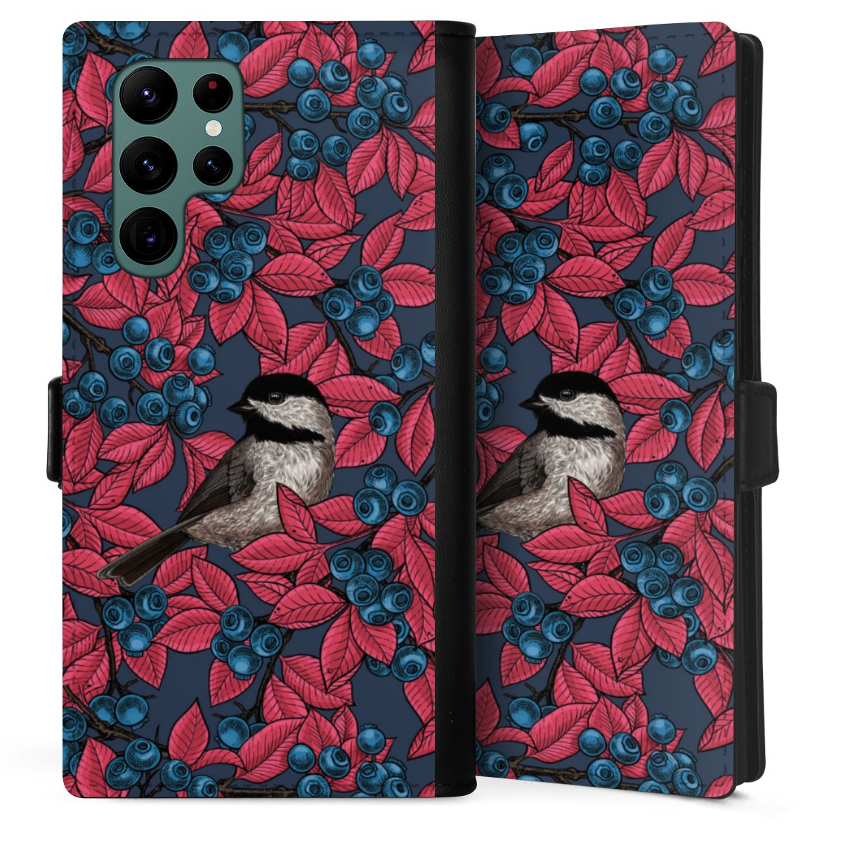 Blueberries And Birds On Navy