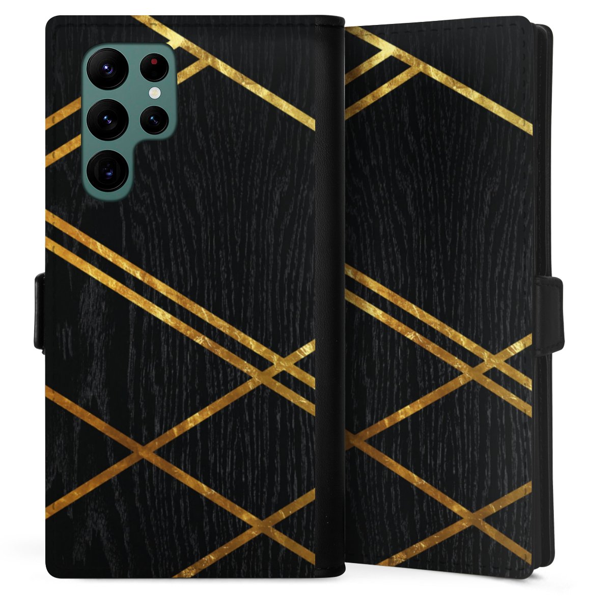 Black Geometric Pattern Golden Stripes