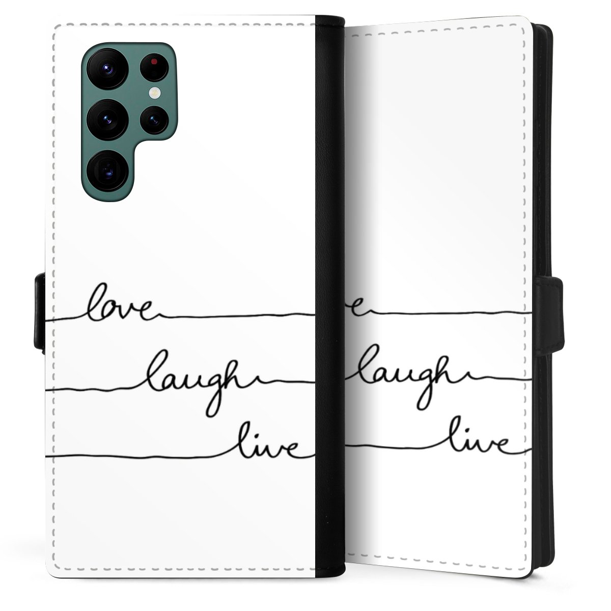 Print technology For our Sideflip Case we are using our advanced direct printing technology. The back and frontside are fully printabale, the inside of the phone bag is left unprinted. You can order the phone case without print, printed completely or also with a partial print.