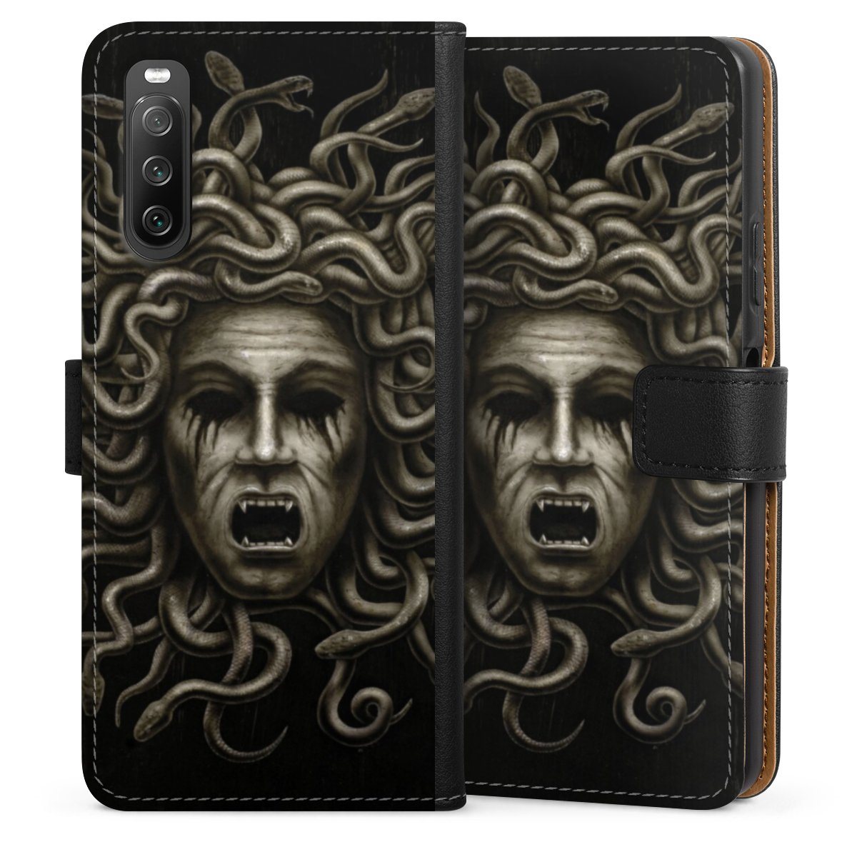 Product details The handy phone bag comes with a polycarbonate hard case on the inside, offering your smartphone secure protection while we are using a highquality, vegan Skai® leather imitate to form the flap and the outside of the case. You can open the flap sidewards and slots for money bills and business cars are included. The case closes with an magnetic flap.
