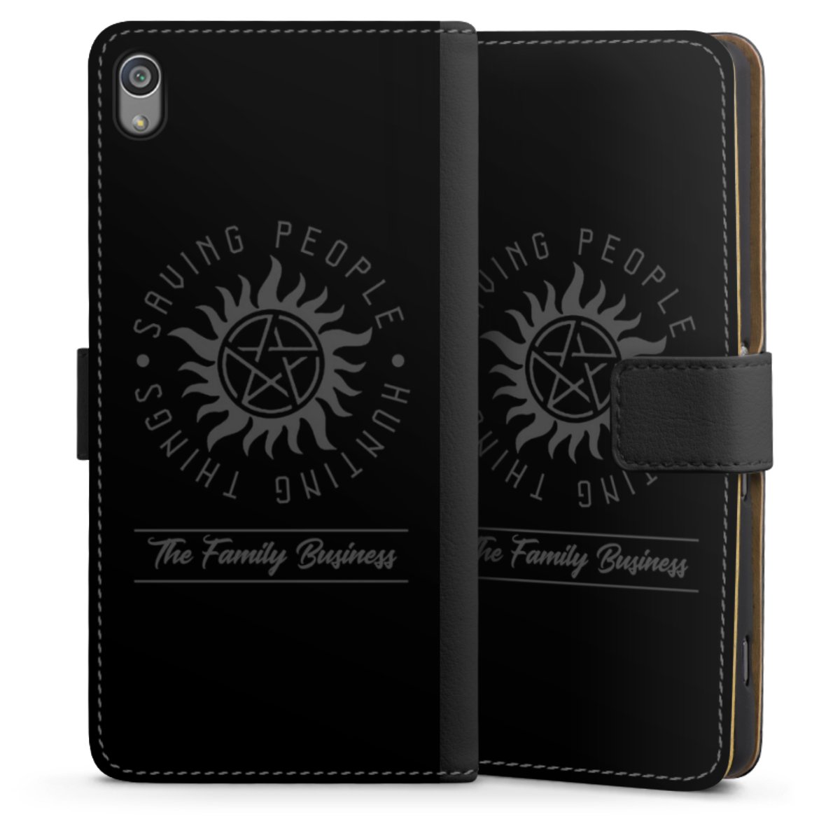 Product details The handy phone bag comes with a polycarbonate hard case on the inside, offering your smartphone secure protection while we are using a highquality, vegan Skai® leather imitate to form the flap and the outside of the case. You can open the flap sidewards and slots for money bills and business cars are included. The case closes with an magnetic flap.