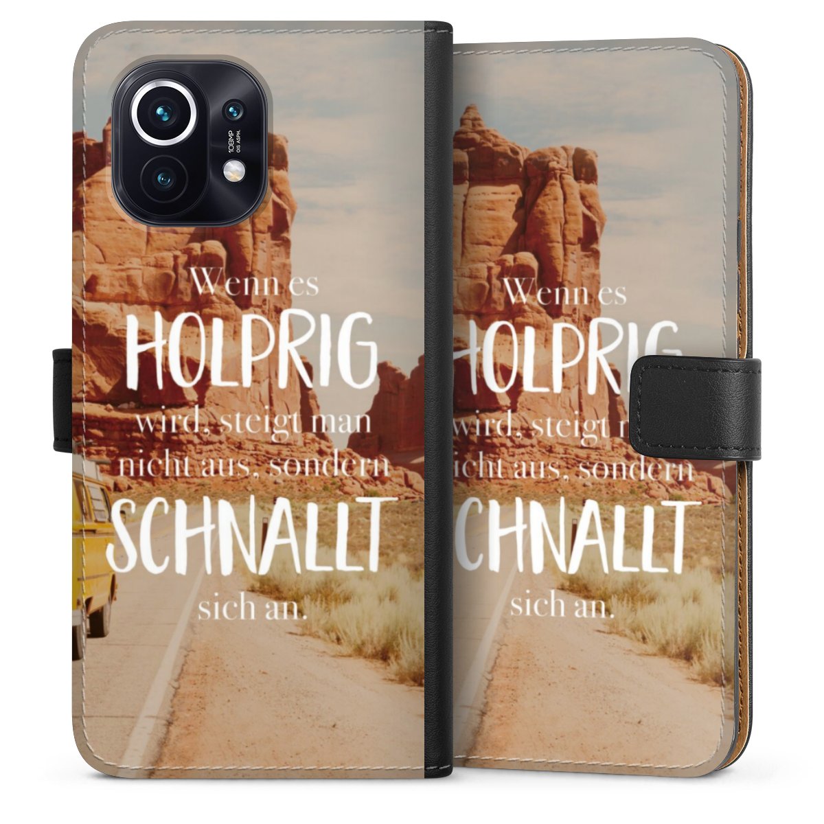 Product details The handy phone bag comes with a polycarbonate hard case on the inside, offering your smartphone secure protection while we are using a highquality, vegan Skai® leather imitate to form the flap and the outside of the case. You can open the flap sidewards and slots for money bills and business cars are included. The case closes with an magnetic flap.