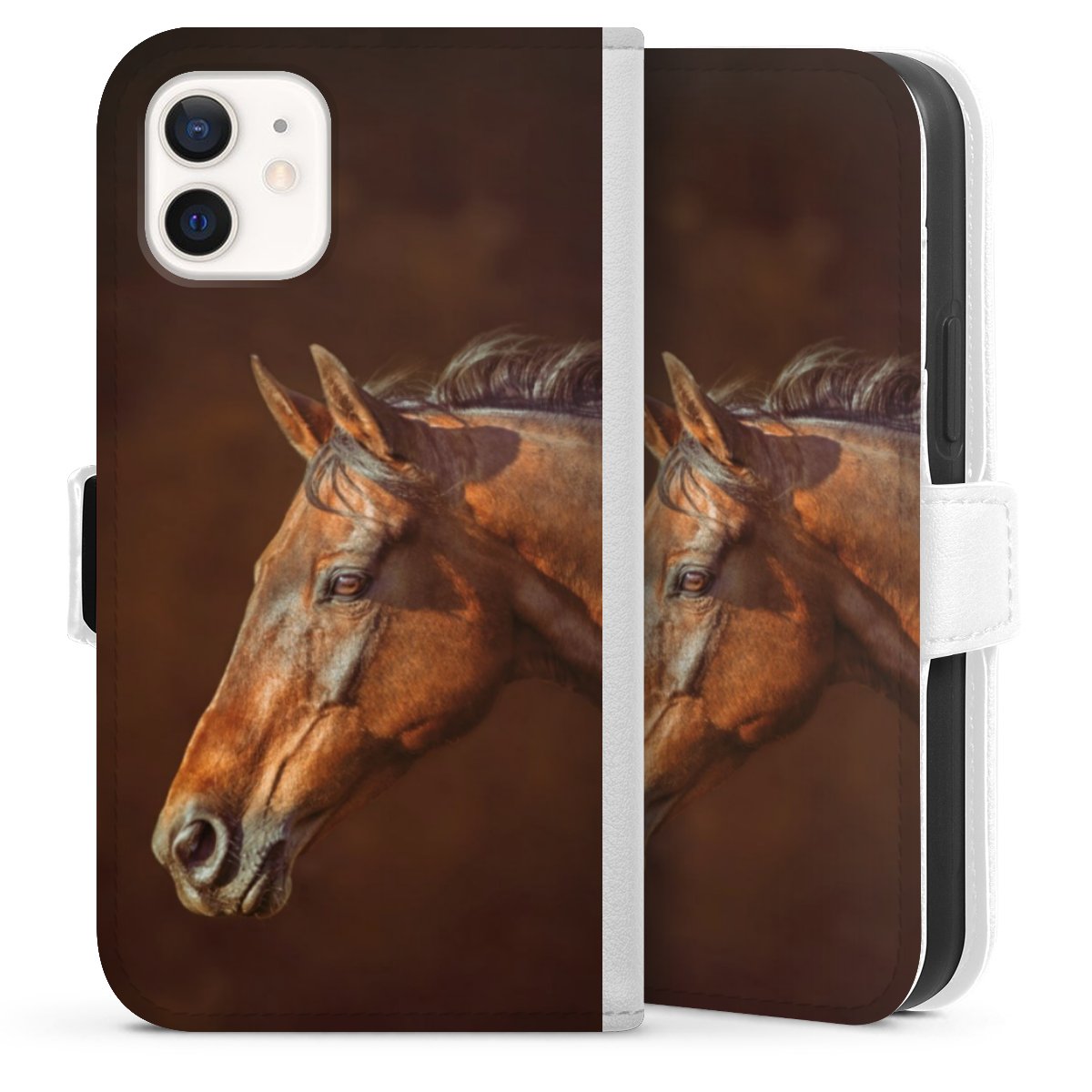 For our Sideflip Case we are using our advanced direct printing technology. The back and frontside are fully printabale, the inside of the phone bag is left unprinted. You can order the phone case without print, printed completely or also with a partial print.