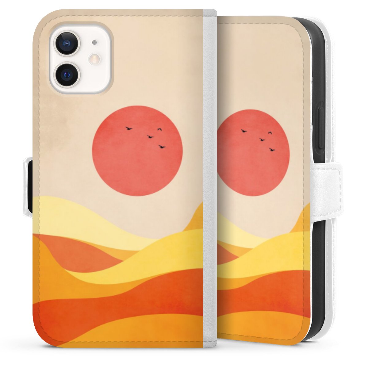 For our Sideflip Case we are using our advanced direct printing technology. The back and frontside are fully printabale, the inside of the phone bag is left unprinted. You can order the phone case without print, printed completely or also with a partial print.