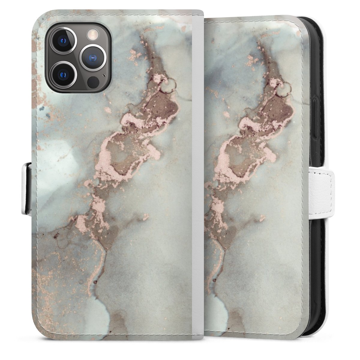 For our Sideflip Case we are using our advanced direct printing technology. The back and frontside are fully printabale, the inside of the phone bag is left unprinted. You can order the phone case without print, printed completely or also with a partial print.