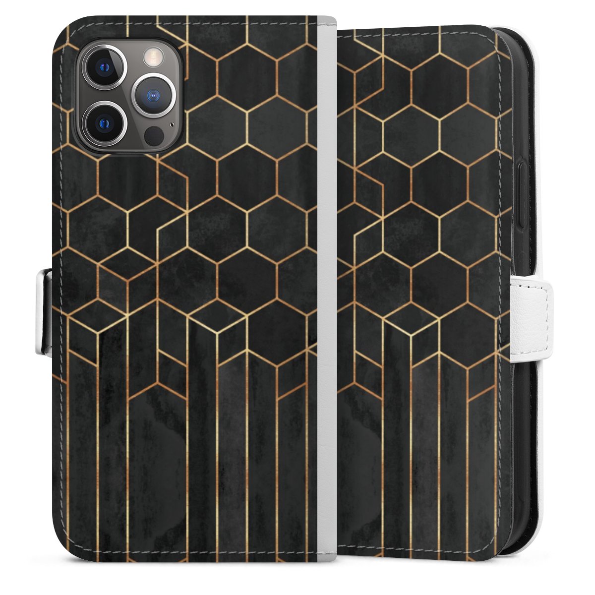 For our Sideflip Case we are using our advanced direct printing technology. The back and frontside are fully printabale, the inside of the phone bag is left unprinted. You can order the phone case without print, printed completely or also with a partial print.