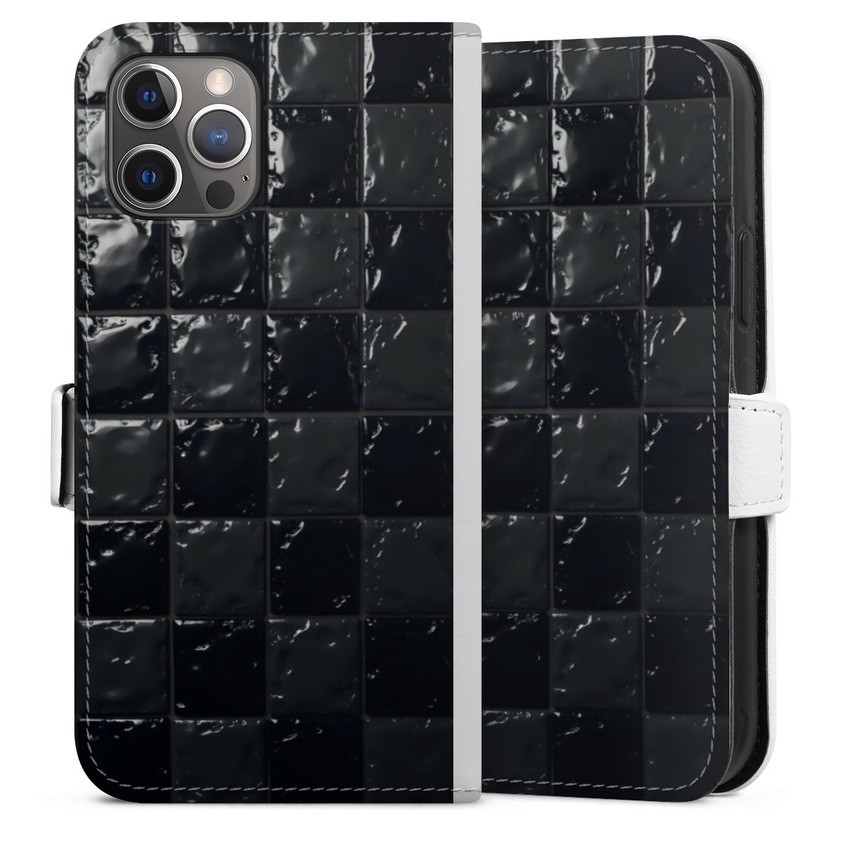 For our Sideflip Case we are using our advanced direct printing technology. The back and frontside are fully printabale, the inside of the phone bag is left unprinted. You can order the phone case without print, printed completely or also with a partial print.