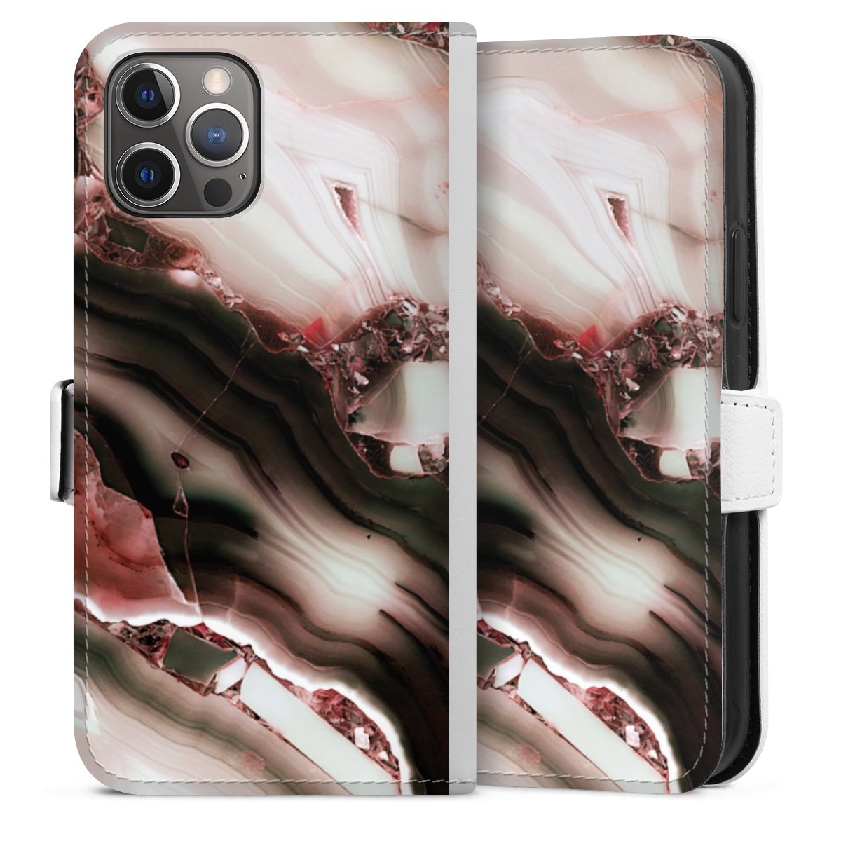 For our Sideflip Case we are using our advanced direct printing technology. The back and frontside are fully printabale, the inside of the phone bag is left unprinted. You can order the phone case without print, printed completely or also with a partial print.