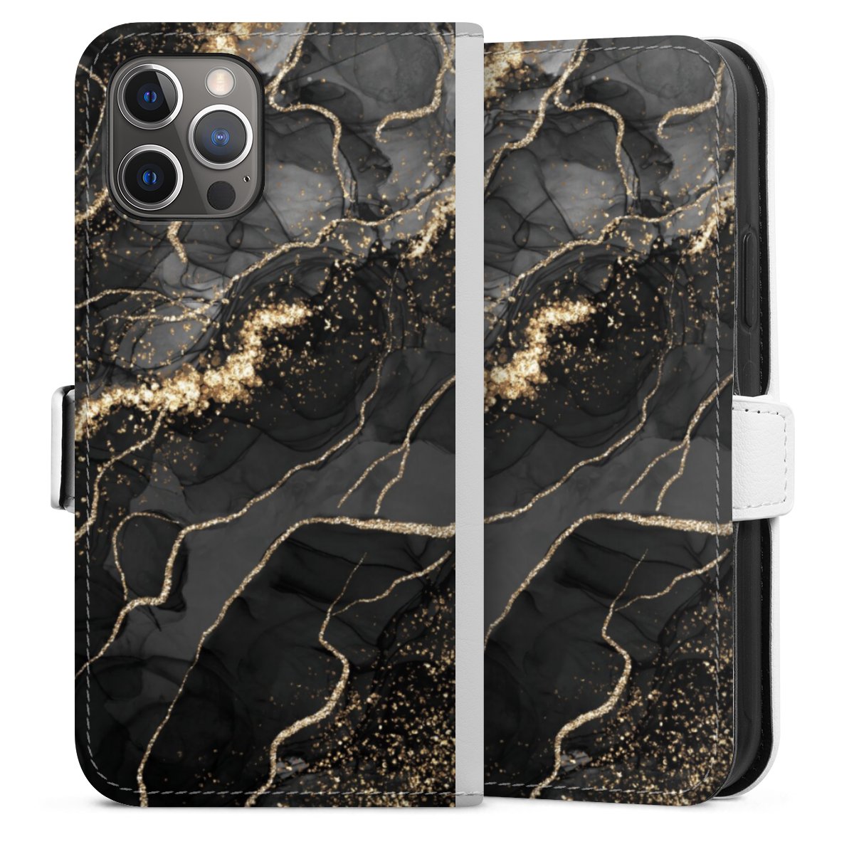 For our Sideflip Case we are using our advanced direct printing technology. The back and frontside are fully printabale, the inside of the phone bag is left unprinted. You can order the phone case without print, printed completely or also with a partial print.
