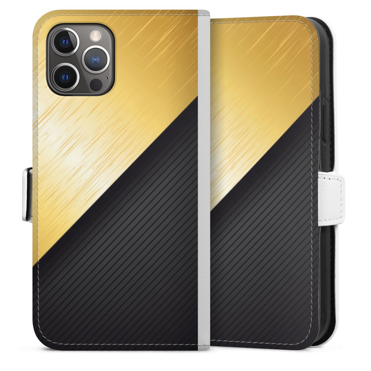 For our Sideflip Case we are using our advanced direct printing technology. The back and frontside are fully printabale, the inside of the phone bag is left unprinted. You can order the phone case without print, printed completely or also with a partial print.