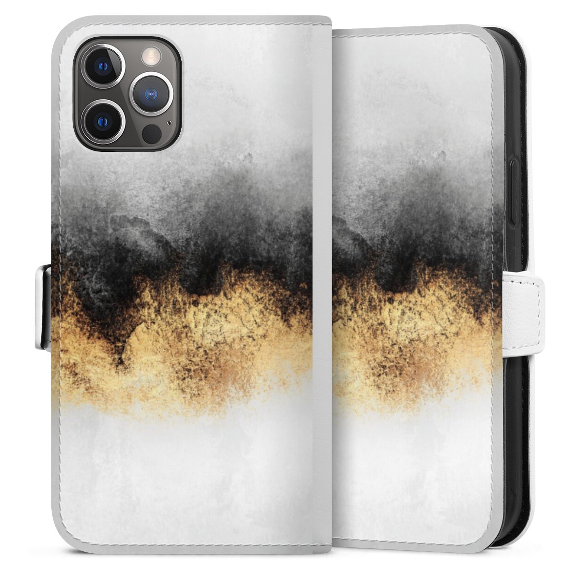 For our Sideflip Case we are using our advanced direct printing technology. The back and frontside are fully printabale, the inside of the phone bag is left unprinted. You can order the phone case without print, printed completely or also with a partial print.