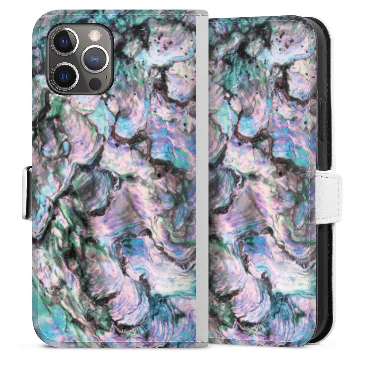 For our Sideflip Case we are using our advanced direct printing technology. The back and frontside are fully printabale, the inside of the phone bag is left unprinted. You can order the phone case without print, printed completely or also with a partial print.