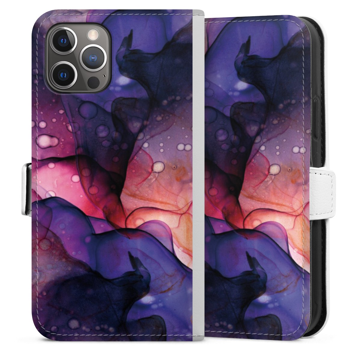 For our Sideflip Case we are using our advanced direct printing technology. The back and frontside are fully printabale, the inside of the phone bag is left unprinted. You can order the phone case without print, printed completely or also with a partial print.