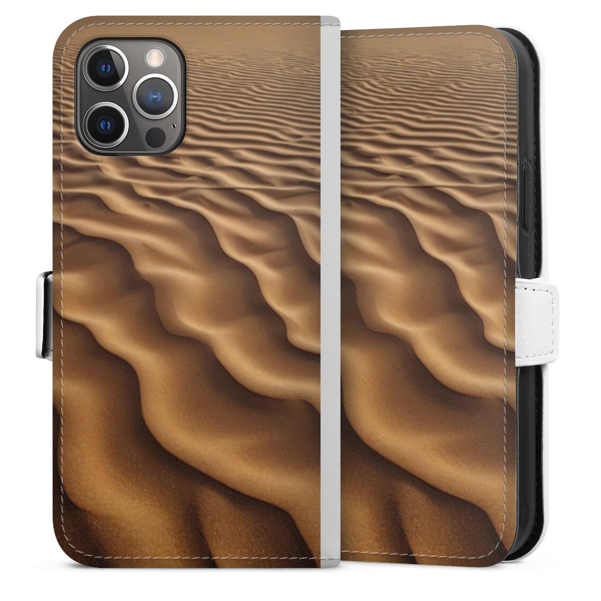 For our Sideflip Case we are using our advanced direct printing technology. The back and frontside are fully printabale, the inside of the phone bag is left unprinted. You can order the phone case without print, printed completely or also with a partial print.