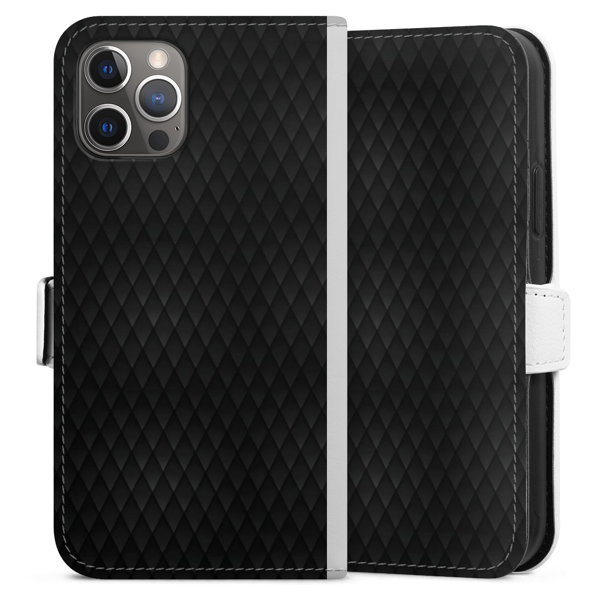 For our Sideflip Case we are using our advanced direct printing technology. The back and frontside are fully printabale, the inside of the phone bag is left unprinted. You can order the phone case without print, printed completely or also with a partial print.