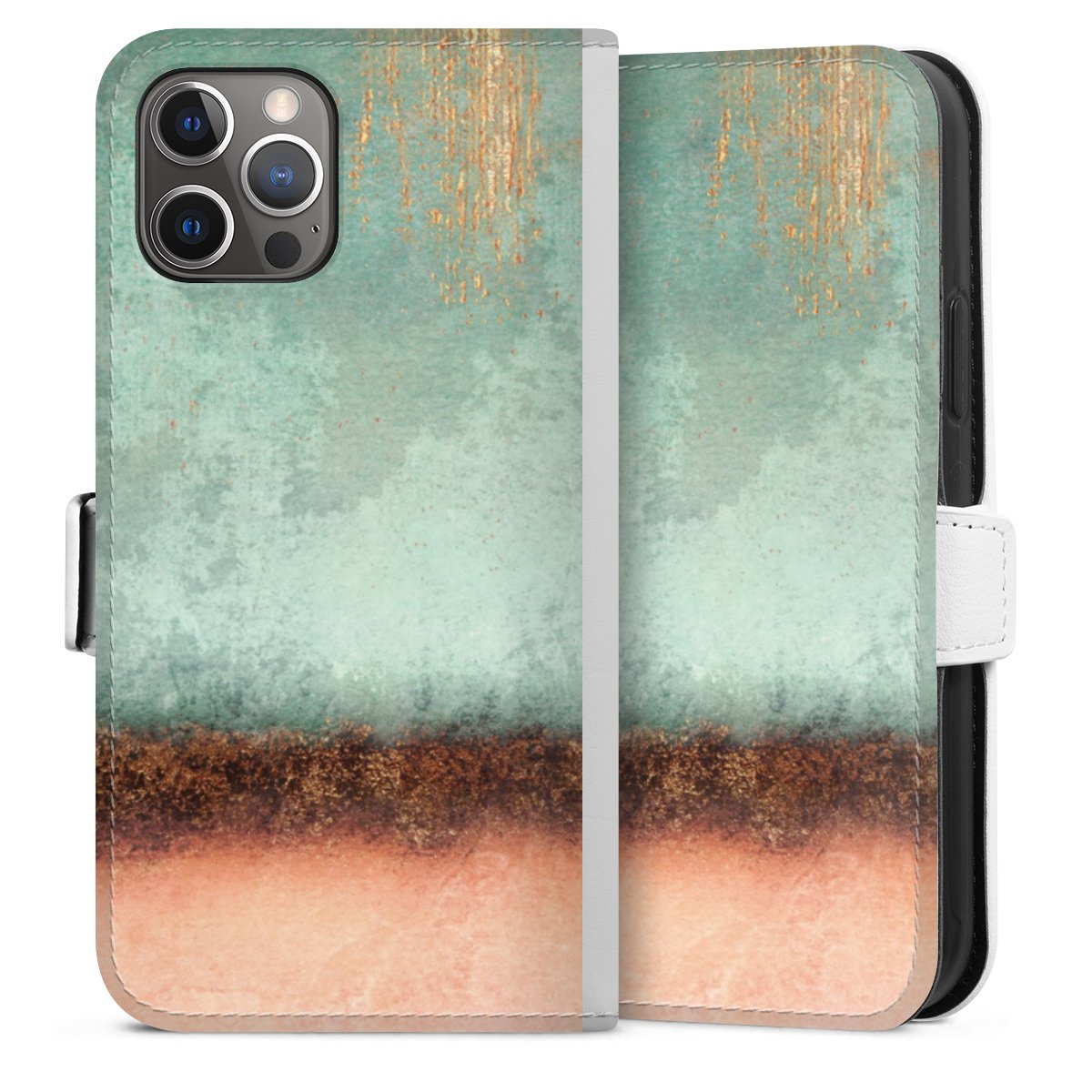 For our Sideflip Case we are using our advanced direct printing technology. The back and frontside are fully printabale, the inside of the phone bag is left unprinted. You can order the phone case without print, printed completely or also with a partial print.